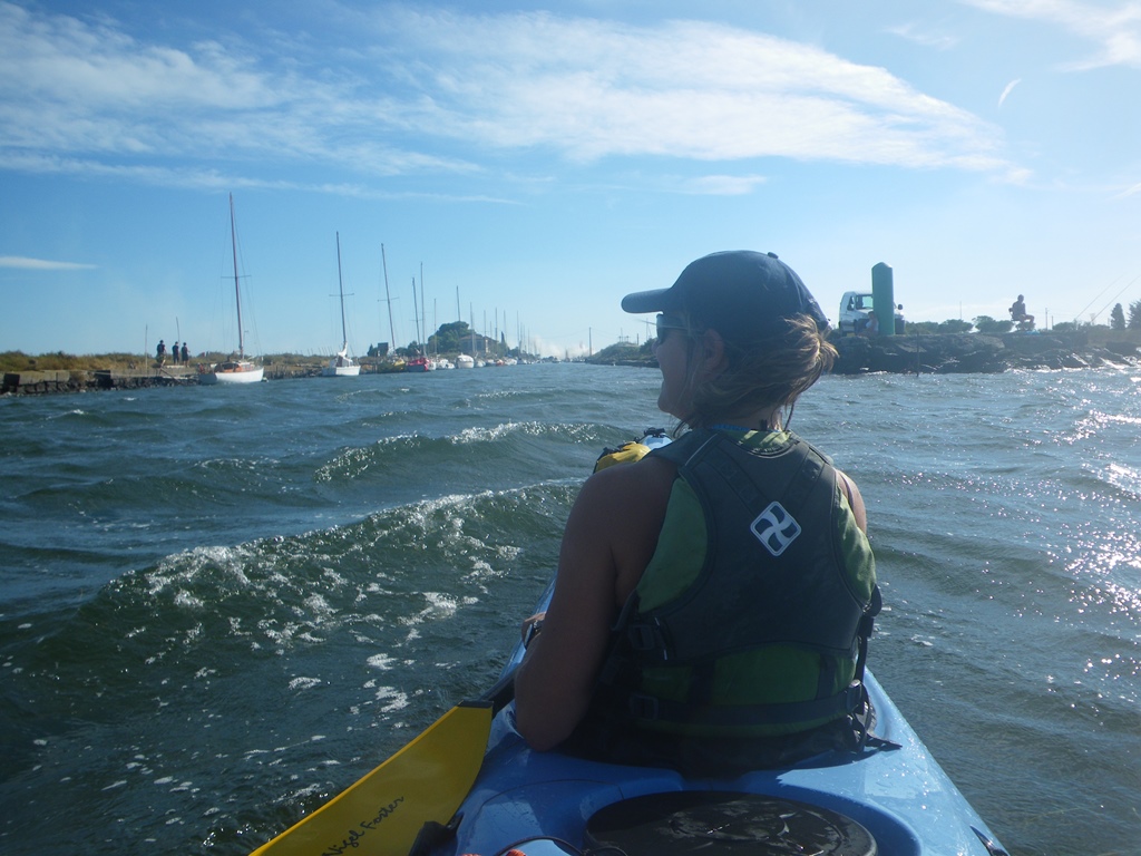 Kristin Nelson entering the Canal du Midi from the lagoon, Étang de Thau, at Phare des Onglous.